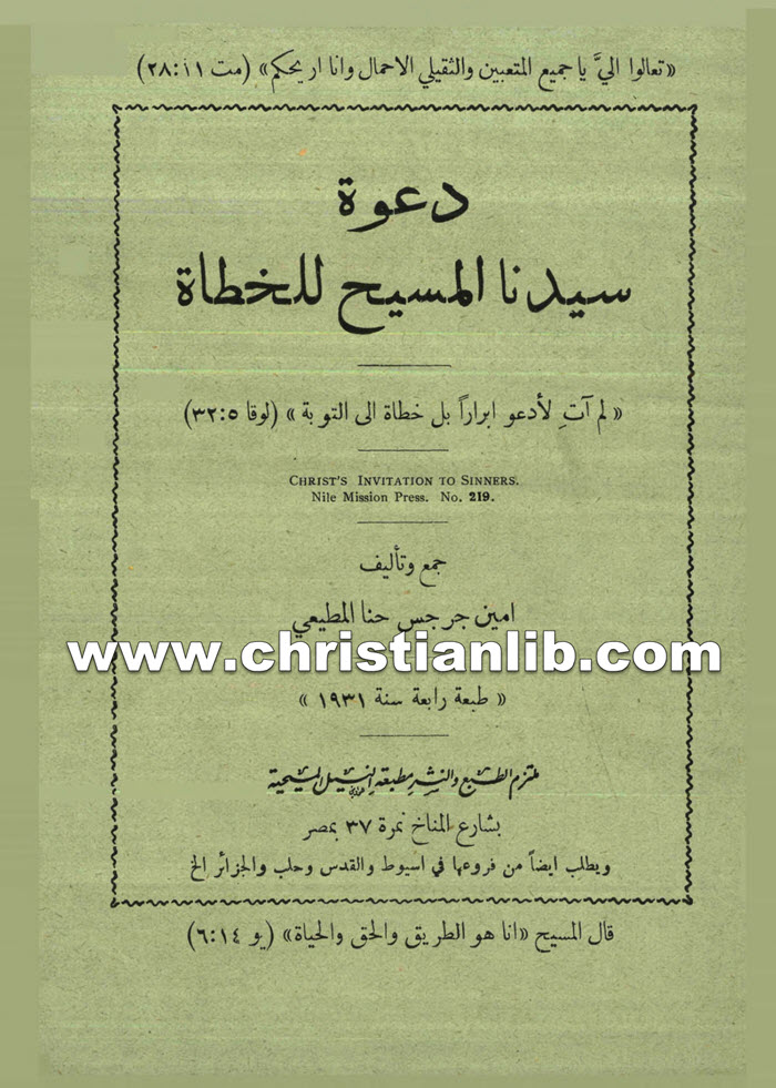 كتاب دعوة سيدنا المسيح للخطاة - أمين جرجس حنا المطيعي
