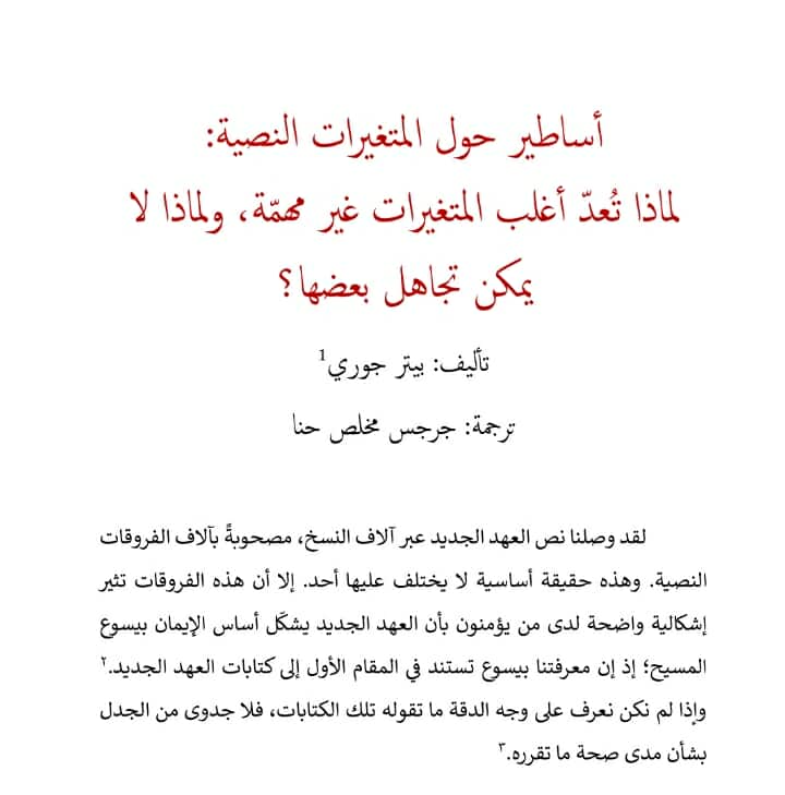 لقد وصلنا نص العهد الجديد عبر آلاف النسخ، مصحوبةً بآلاف الفروقات النصية. وهذه حقيقة أساسية لا يختلف عليها أحد. إلا أن هذه الفروقات تثير إشكالية واضحة لدى من يؤمنون بأن العهد الجديد يشكل أساس الإيمان بيسوع المسيح، إذ إن معرفتنا بيسوع تستند في المقام الأول إلى كتابات العهد الجديد. وإذا لم نكن نعرف على وجه الدقة ما تقوله تلك الكتابات، فلا جدوى من الجدل بشأن مدى صحة ما تقرره.